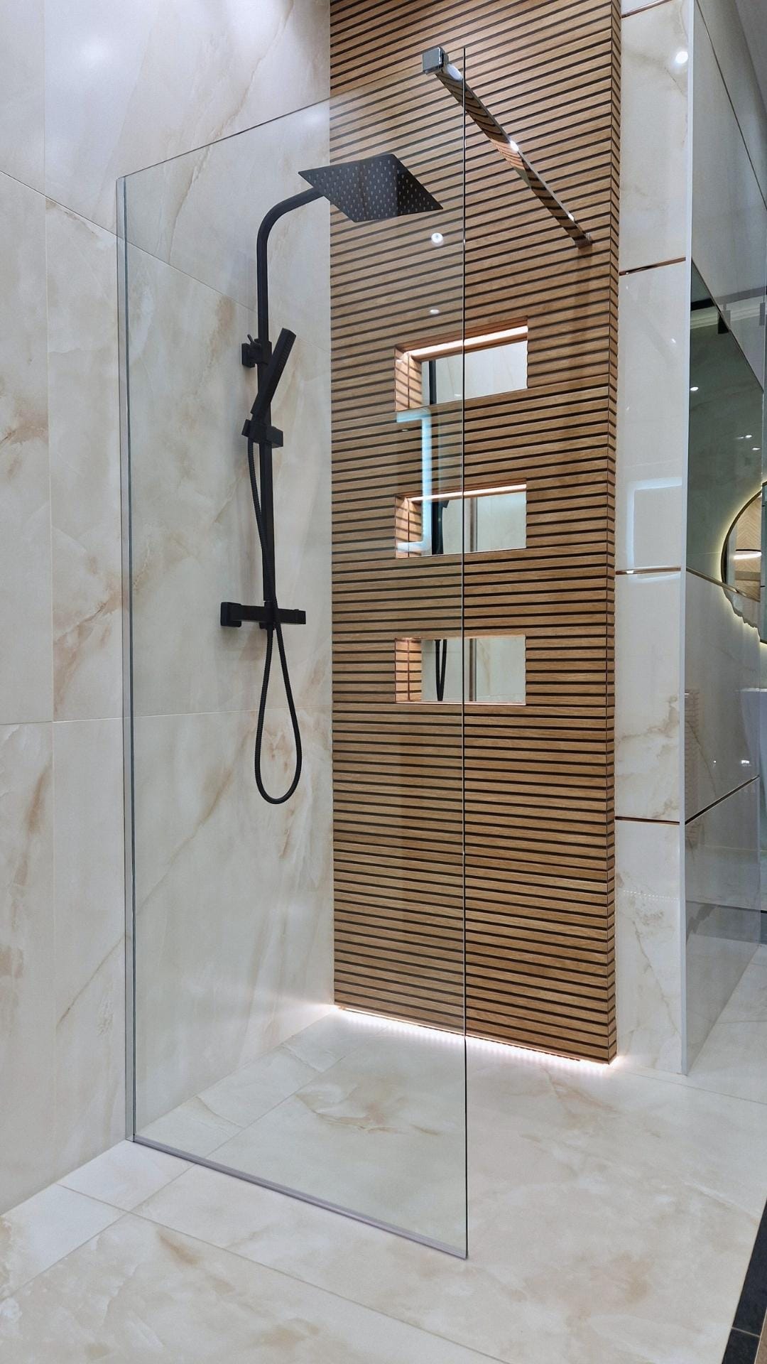 W EUROBUD oferujemy szeroki wybór kabin prysznicowych – od minimalistycznych modeli walk-in, po klasyczne kabiny z drzwiami przesuwnymi i uchylnymi.