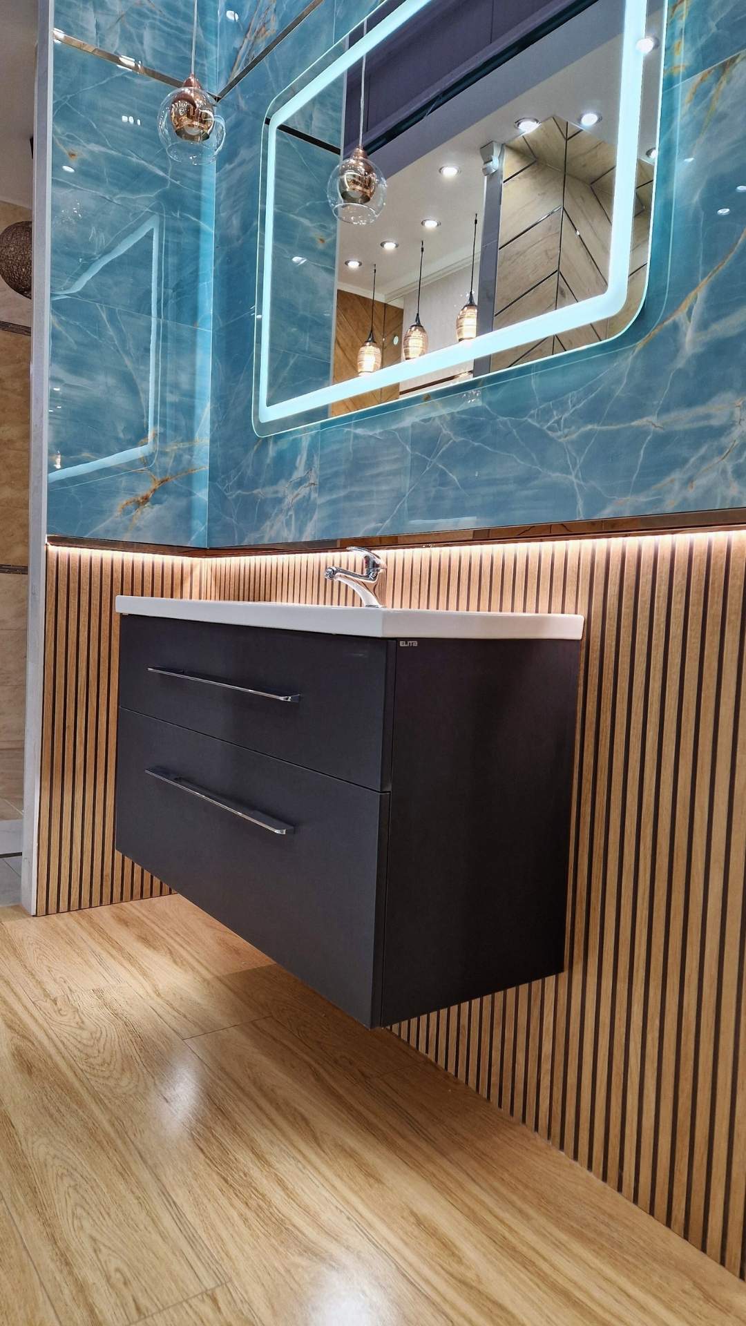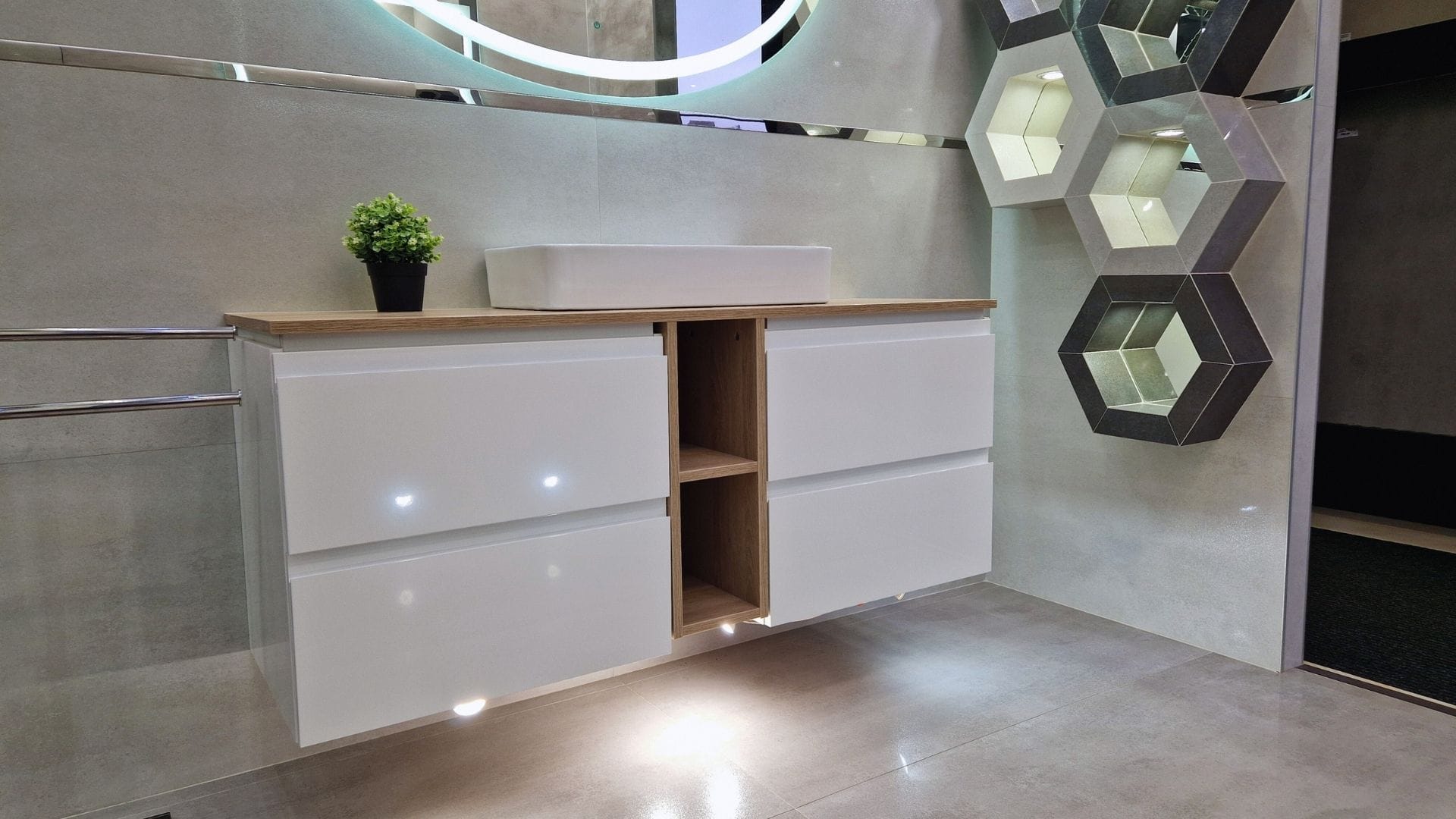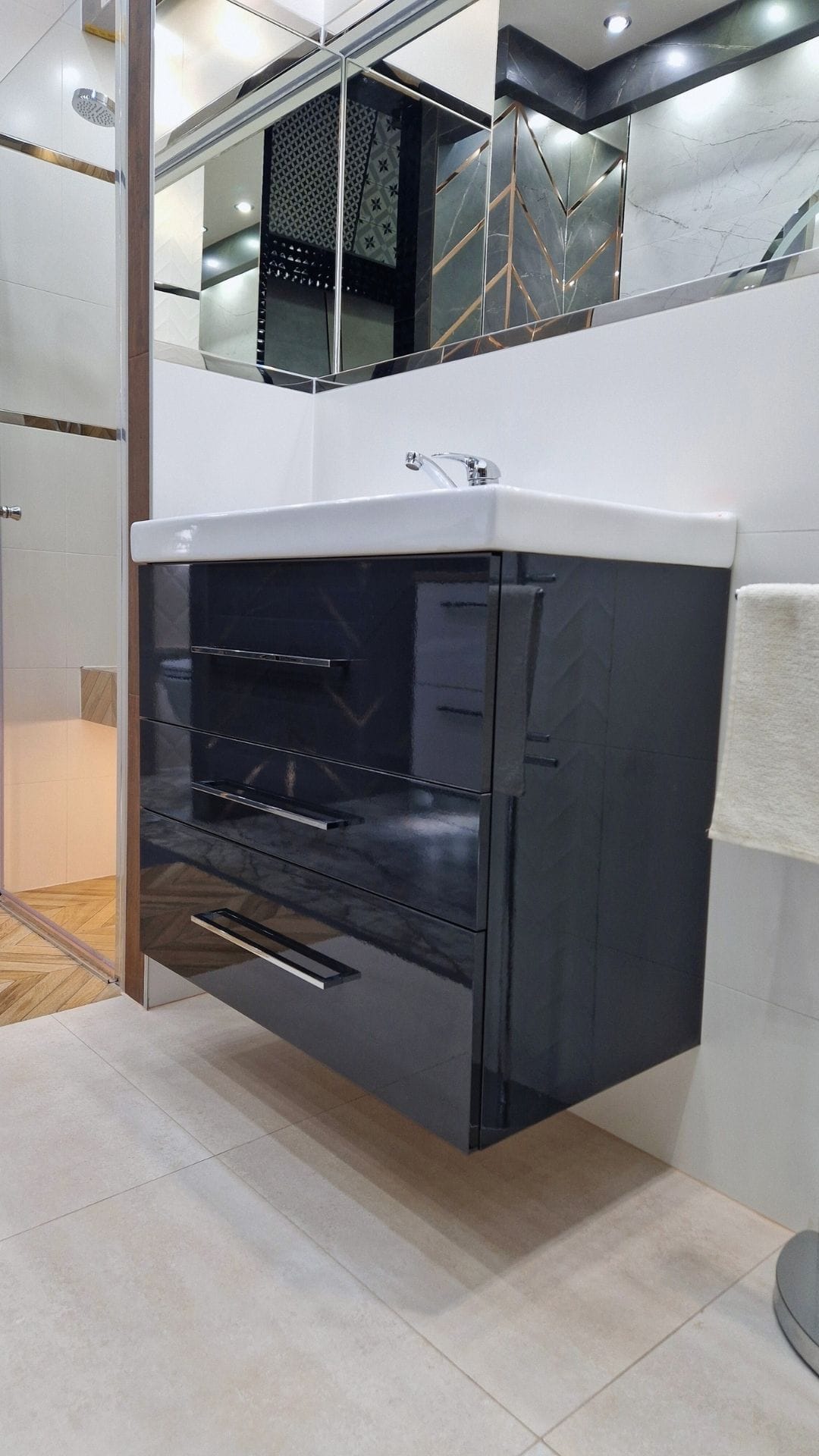 Nowoczesne szafki, eleganckie słupki, stylowe blaty – idealne do małych i przestronnych łazienek.